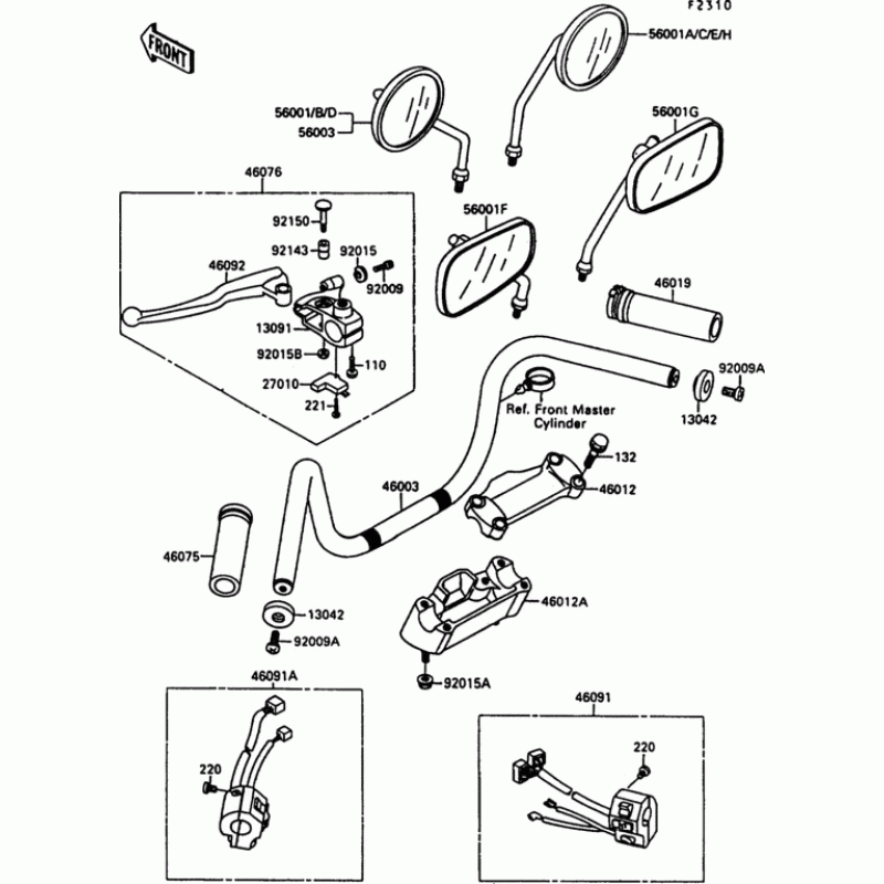Схема узла: Руль (1/2) для Kawasaki EN500 Vulcan 500