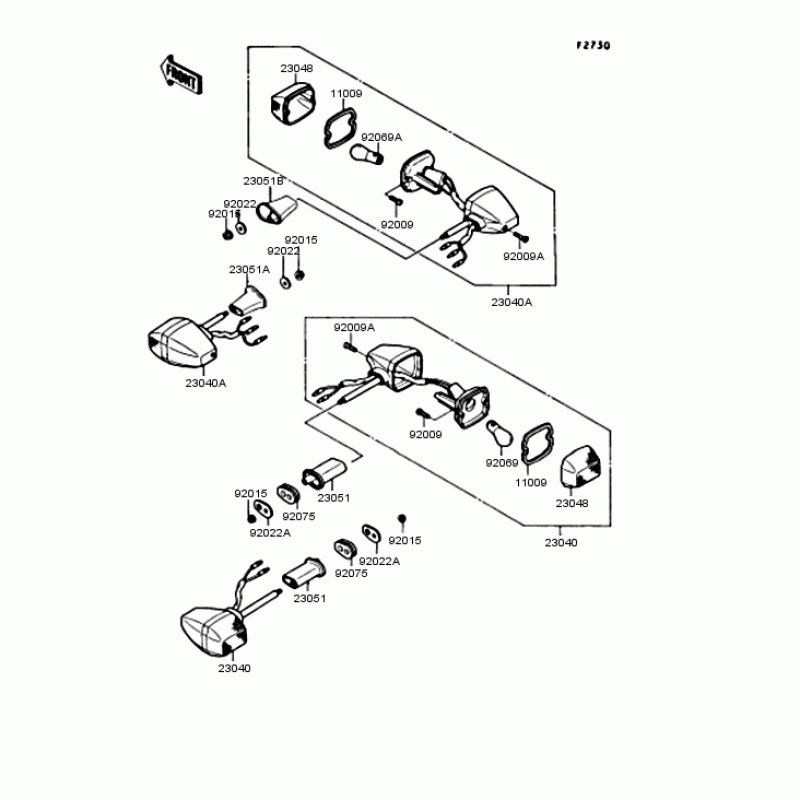 Детализация узла Поворотники для Kawasaki EX400 GPZ400S.