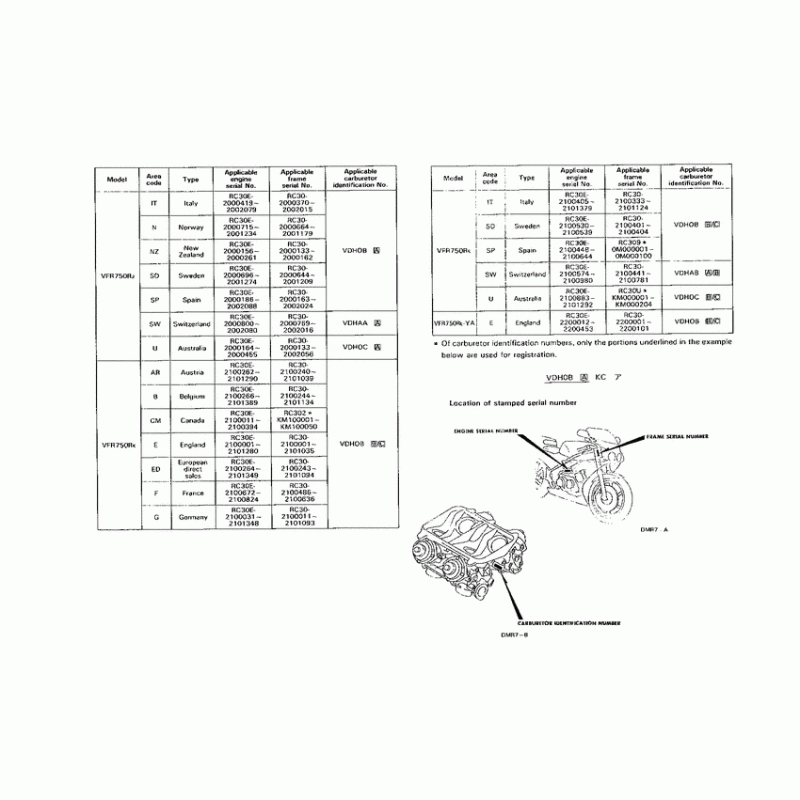Справочная информация для Honda VFR750F VFR750R (RC30)