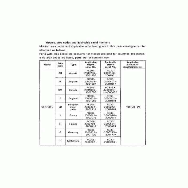 Детализация узла Справочная информация для Honda VFR750F VFR750R (RC30).