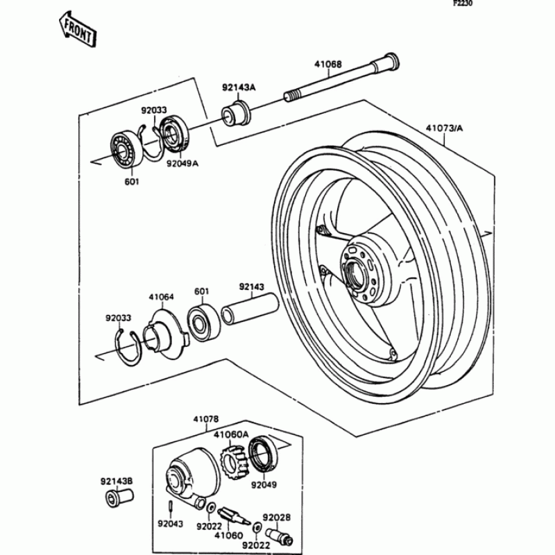 Детализация узла Ступица переднего колеса для Kawasaki ZX750 ZXR750.