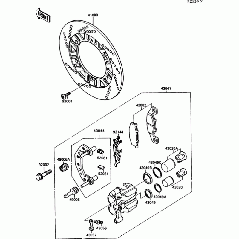 Детализация узла Front caliper для Kawasaki EX500 GPZ500.