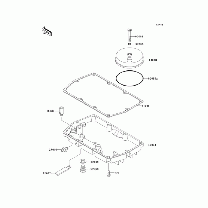 Детализация узла Breather body/oil pan для Kawasaki EX500 GPZ500.