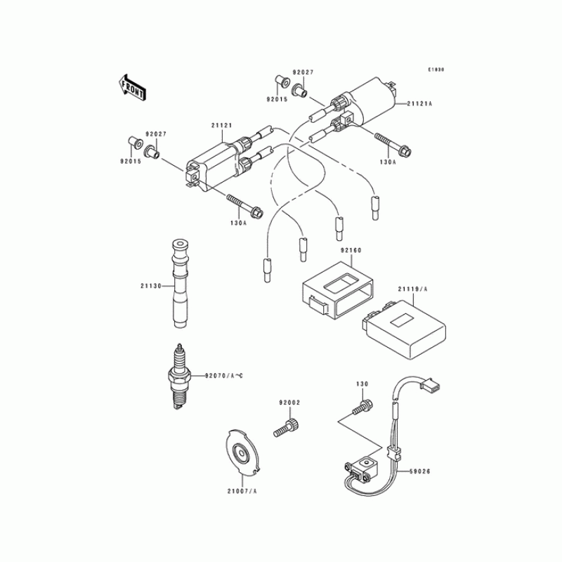 Детализация узла Катушка зажигания для Kawasaki ZX600 Ninja ZX-6.