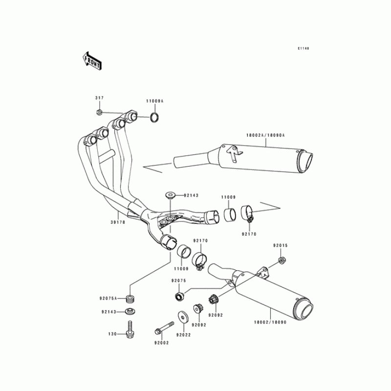 Схема узла: Выхлопная система для Kawasaki ZX600 Ninja ZX-6