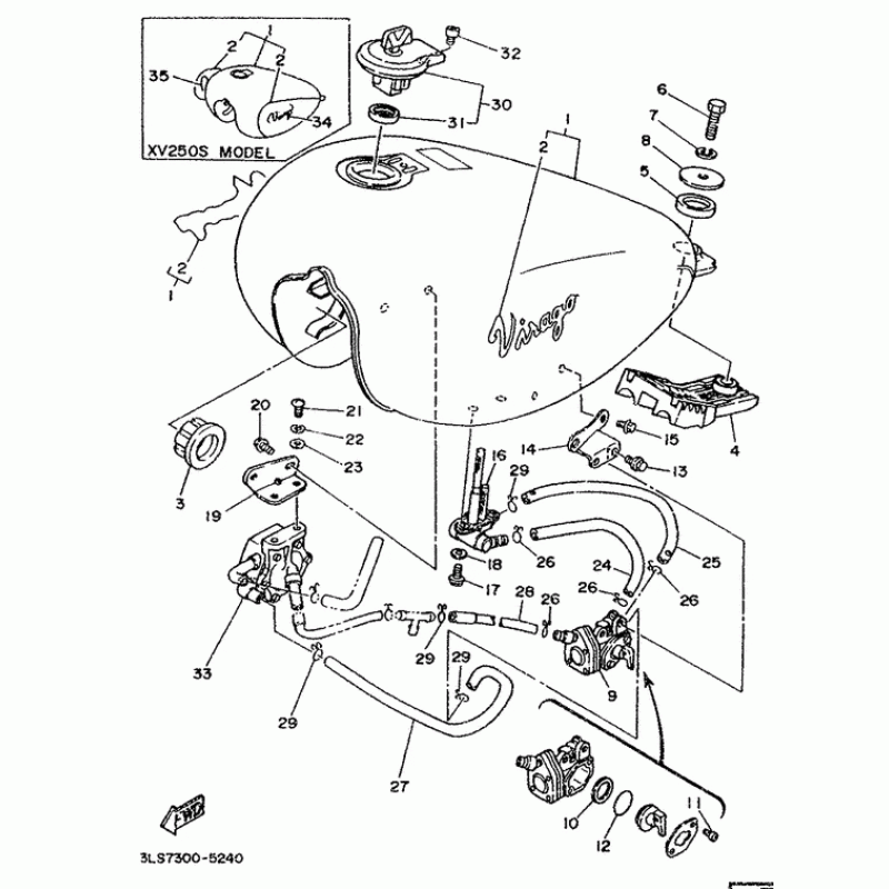 Схема узла: Топливный бак Yamaha XV250 Virago
