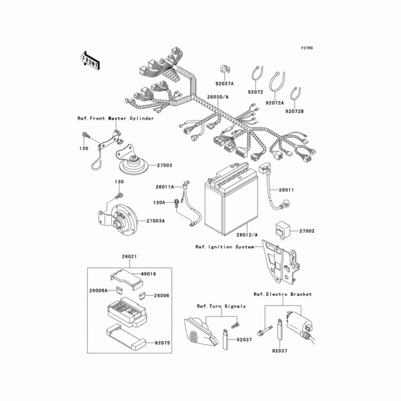 Детализация узла Электрооборудование для Kawasaki EX250 ZZR250.