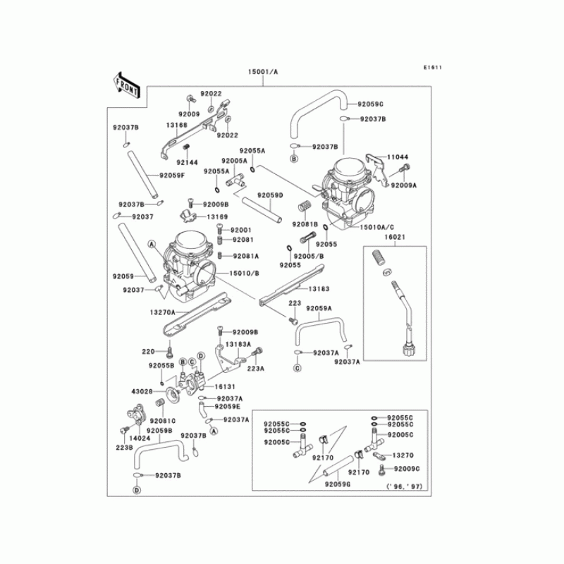 Детализация узла Карбюратор(1/2) для Kawasaki EX250 ZZR250.