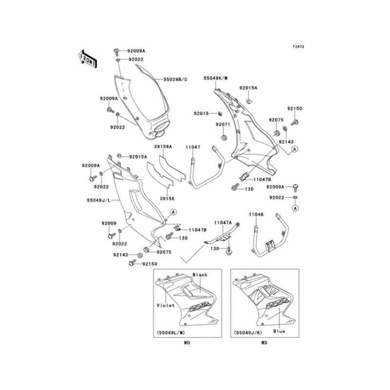 Схема узла: Нижний обтекатель для Kawasaki EX250 ZZR250
