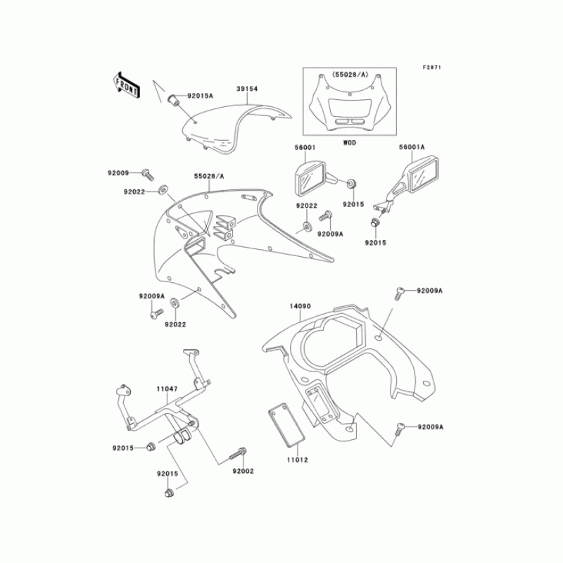 Детализация узла Облицовочные элементы для Kawasaki EX250 ZZR250.