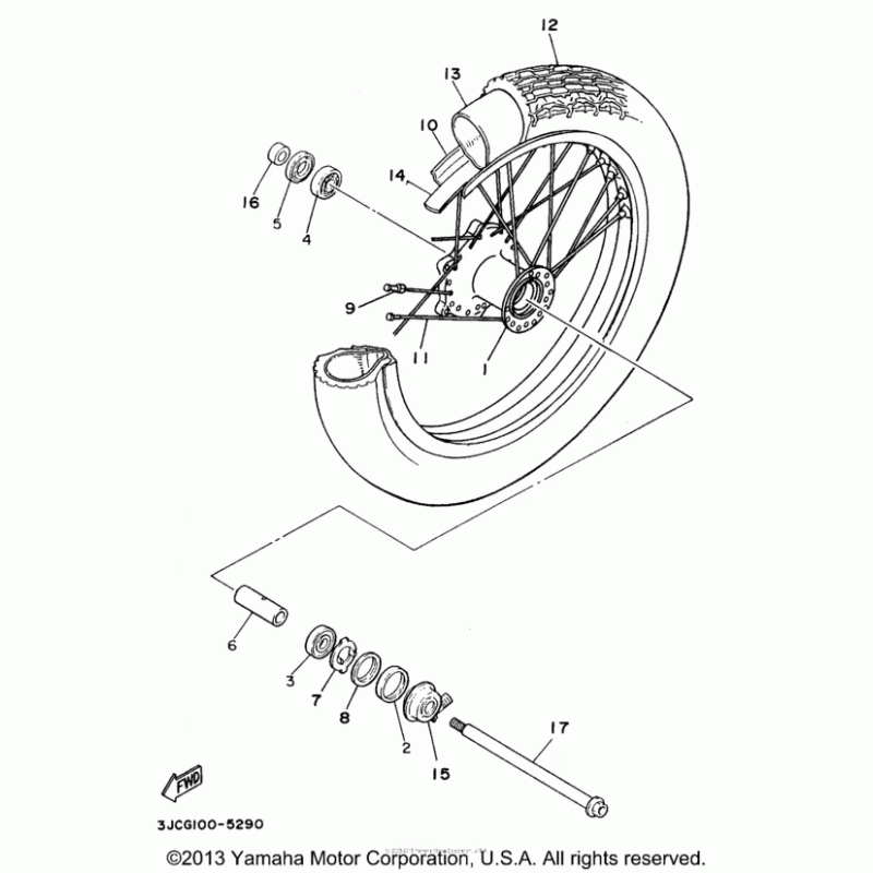 Схема узла: Переднее колесо Yamaha XV535 Virago