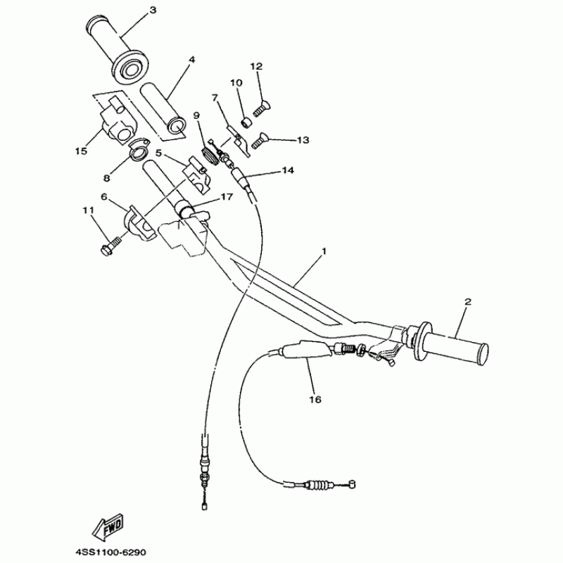 Детализация узла Руль и Тросики Yamaha YZ125.