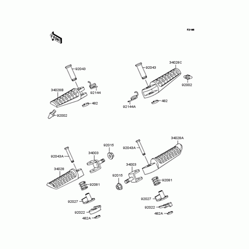 Детализация узла Подножки для Kawasaki ZR400 Zephyr X.