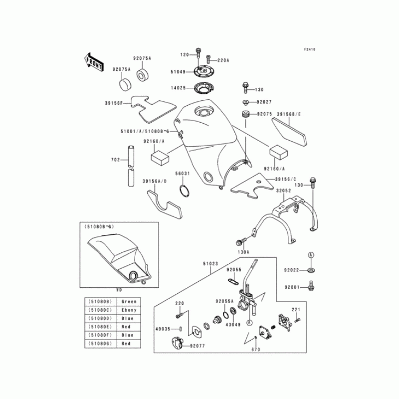 Детализация узла Топливный бак(1/2) для Kawasaki KLE500.
