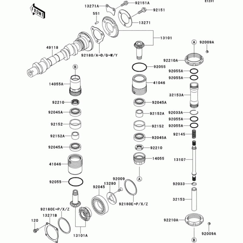 Детализация узла Распредвал(ы)/bevel gear(1/2) для Kawasaki EJ650 W650.