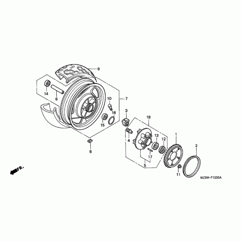 Детализация узла Заднее колесо для Honda VF750 Magna.