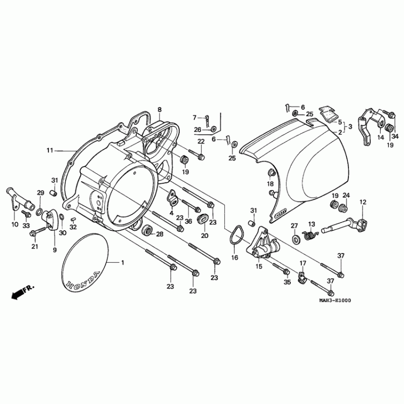 Детализация узла Левая крышка картера для Honda VT1100 Shadow A.C.E..