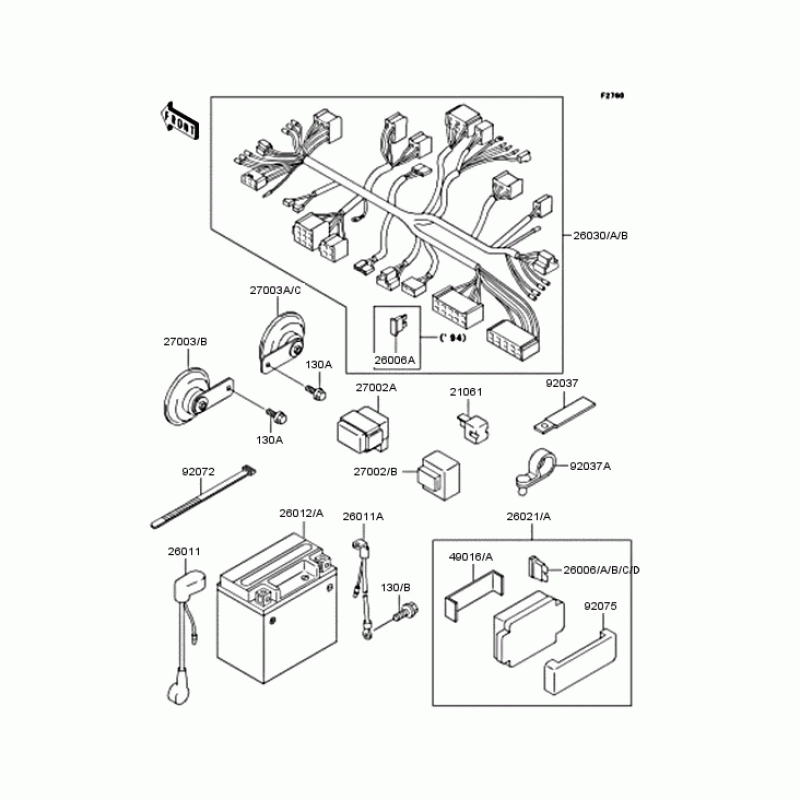 Детализация узла Электрооборудование для Kawasaki ZR1100 Zephyr 1100.