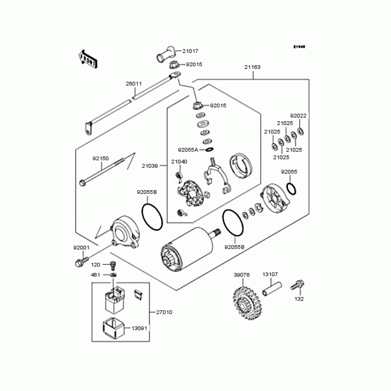 Детализация узла Стартер электрический & Привод стартера для Kawasaki ZX1100 GPZ1100.