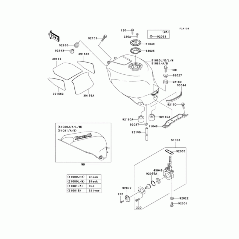 Схема узла: Топливный бак(1/2)(zx750-p3/p4) для Kawasaki ZX750 Ninja ZX-7R