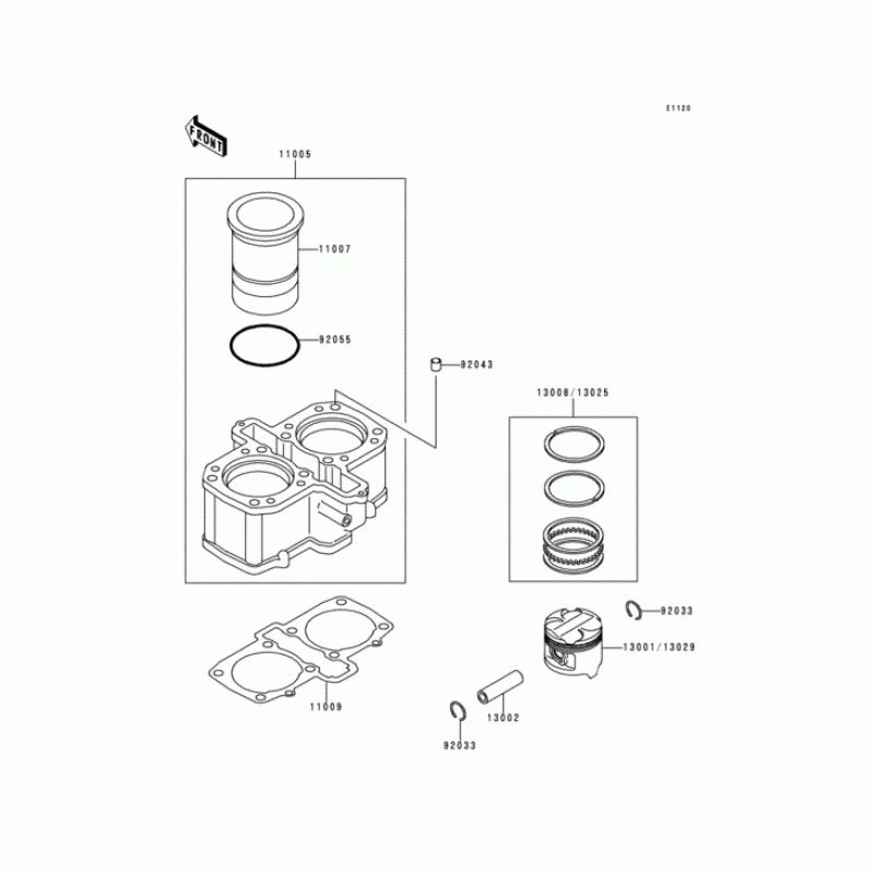 Детализация узла Цилиндр & Поршень для Kawasaki KLE500.