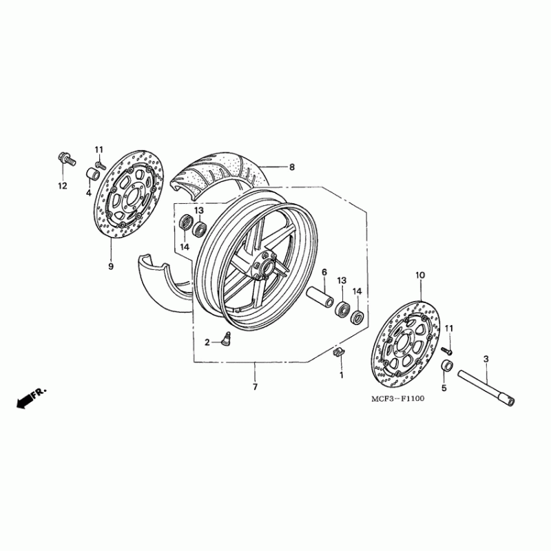 Детализация узла Передние колесо (VTR1000SPY/1) для Honda VTR1000 VTR SP-1.