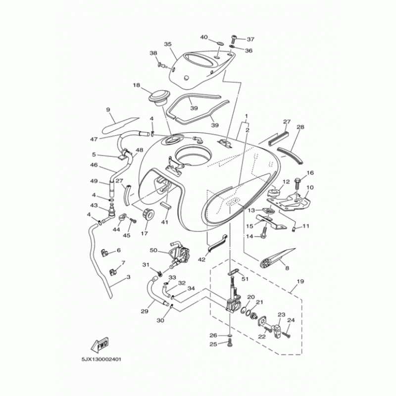 Детализация узла Топливный бак Yamaha XVS125 Drag Star.