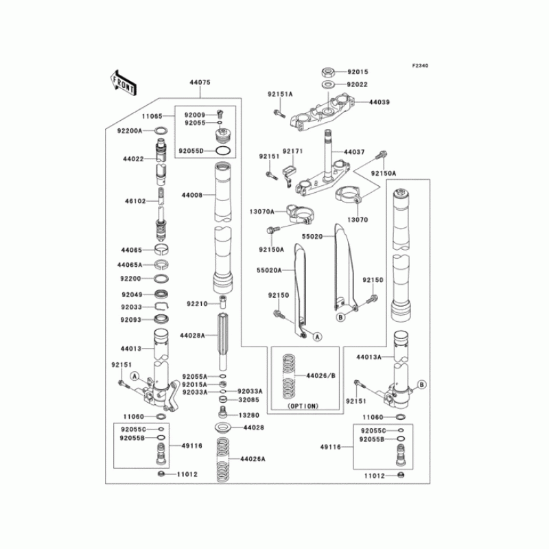 Детализация узла Передняя вилка(1/2) для Kawasaki KX125.