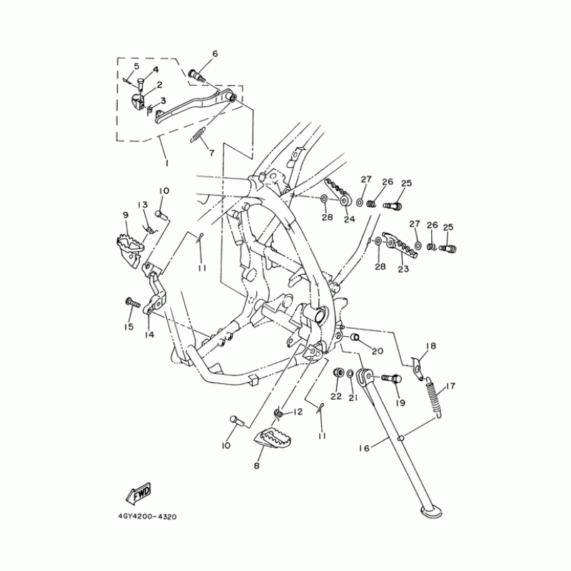 Детализация узла Support. repose-pied Yamaha TT250R TT-R.