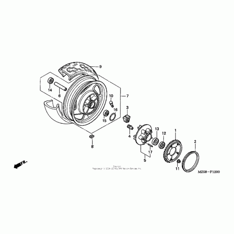 Детализация узла Заднее колесо для Honda VF750 Magna.