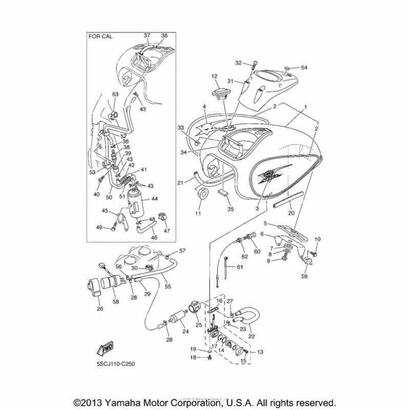 Схема узла: Топливный бак Yamaha XVS650 V-Star Silverado