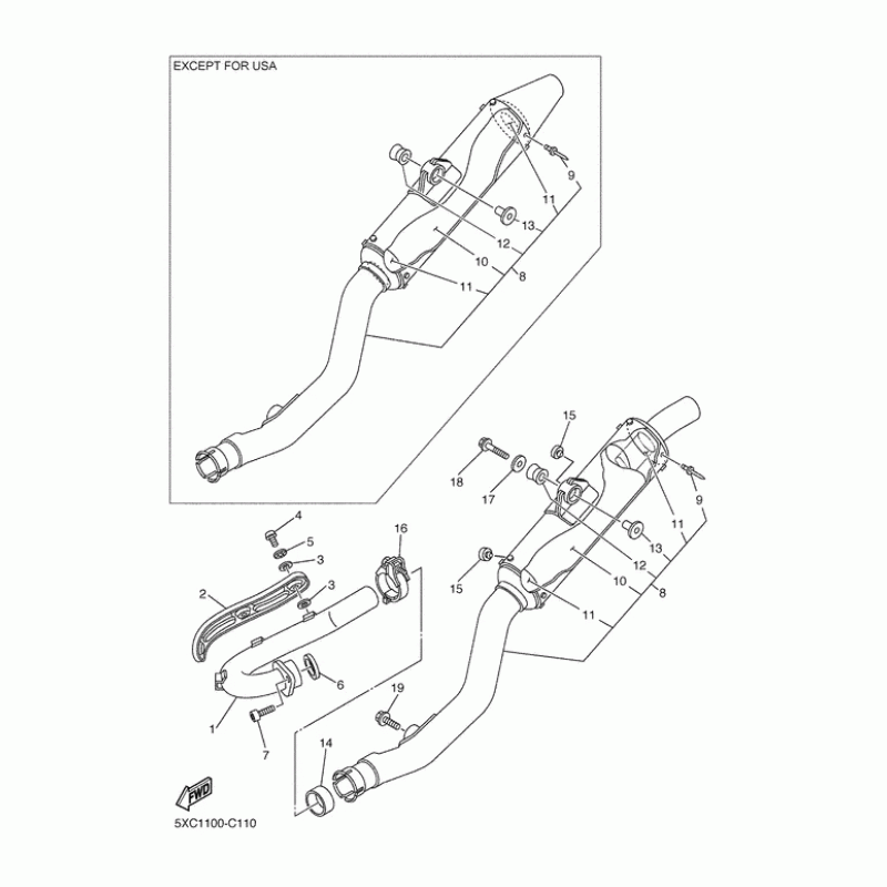 Схема узла: Выхлопная система Yamaha YZ250 YZ250F