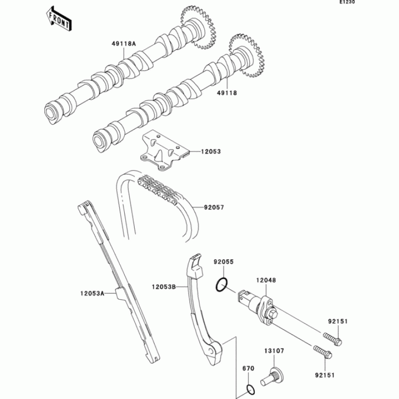 Схема узла: Распредвал & Цепь ГРМ & Натяжитель для Kawasaki ZX600 Ninja ZX-6R