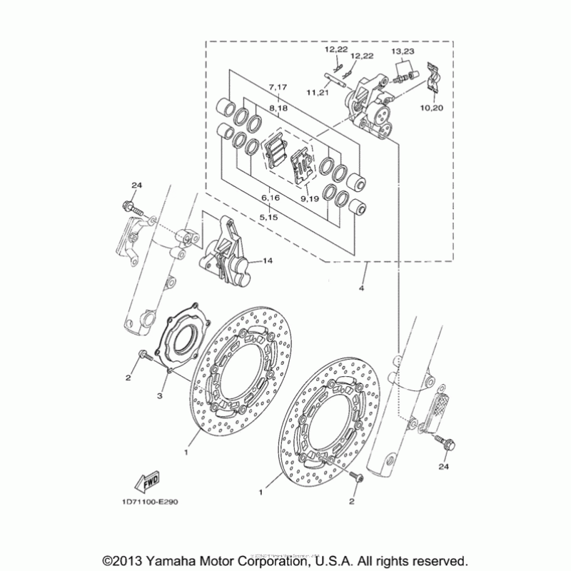Схема узла: Передний тормоз Yamaha XV1900 Stratoliner S