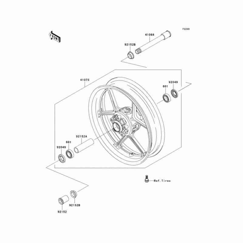 Схема узла: Front wheel для Kawasaki ZX600 Ninja ZX-6R