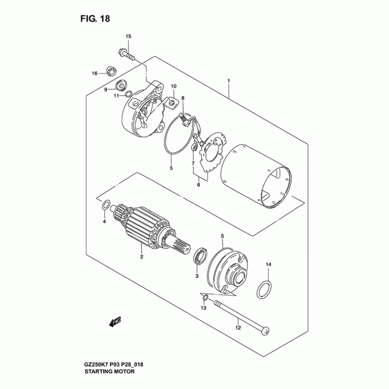 Схема узла: Стартер электрический для Suzuki GZ250 Marauder
