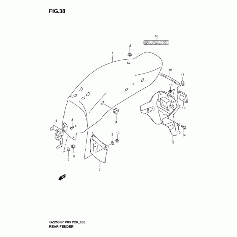 Схема узла: Заднее крыло для Suzuki GZ250 Marauder