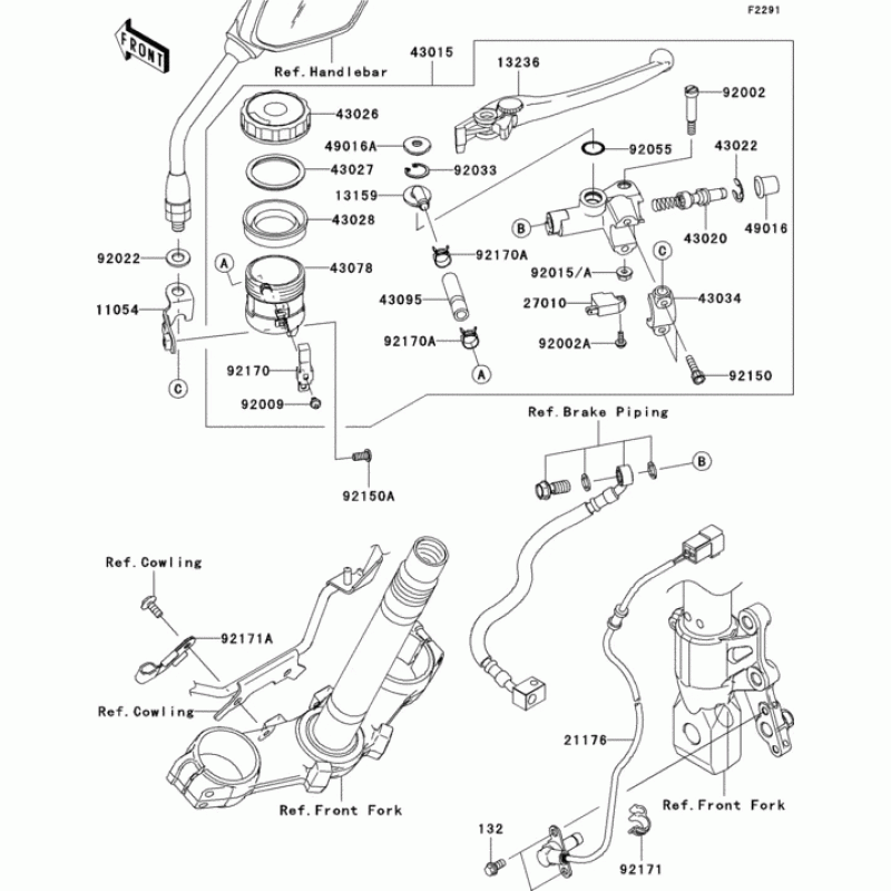 Схема узла: Передний тормозной цилиндр для Kawasaki ZR750 Z750 ABS