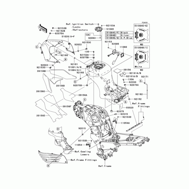 Детализация узла Fuel tank(1/2) для Kawasaki ZX1400 Ninja ZX-14.