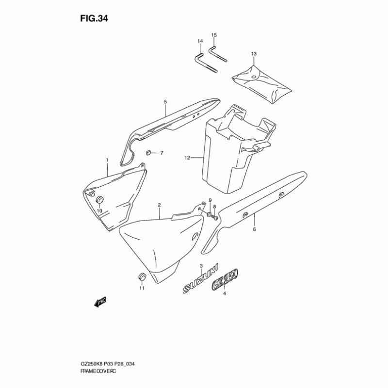 Схема узла: Боковые панели для Suzuki GZ250 Marauder