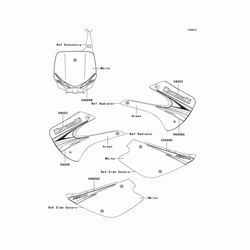 Схема узла: Наклейки (Green; d9f) для Kawasaki KX100