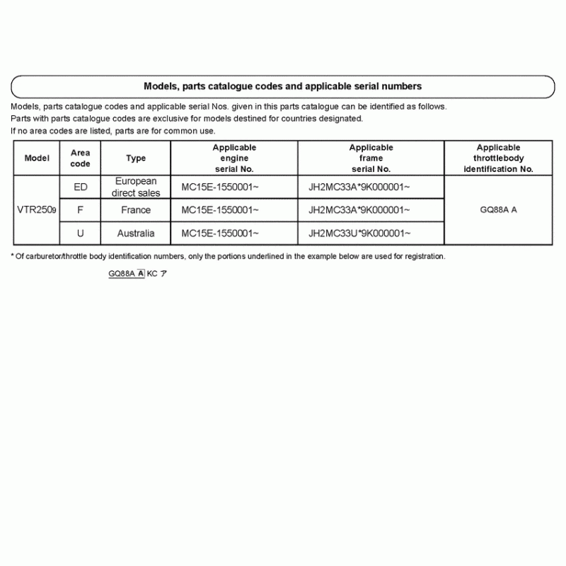 Детализация узла Справочная информация для Honda VTR250 VTR.