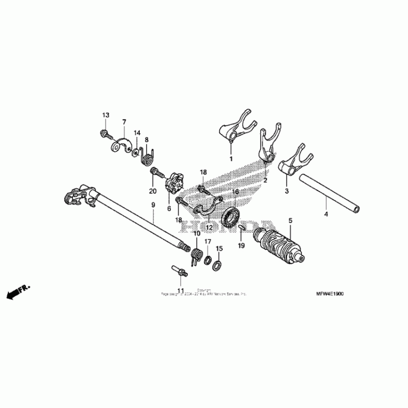 Детализация узла Копирный вал & Вилки & Вал переключения для Honda VT1300 Sabre.
