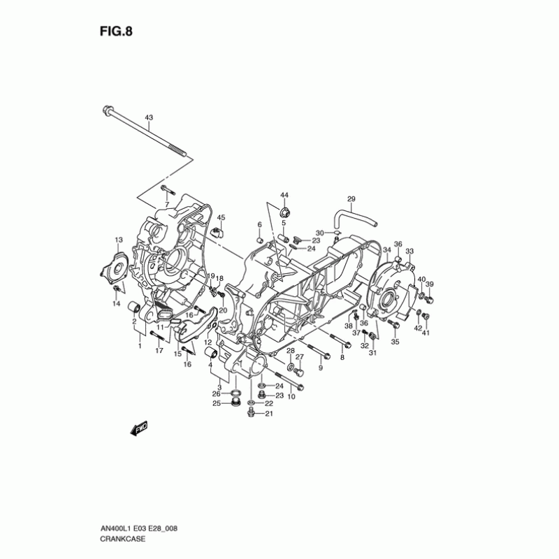 Детализация узла Картер двигателя (An400zal1 e28) для Suzuki AN400 Burgman (European analogue.