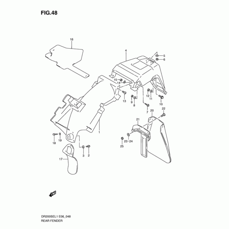 Схема узла: Заднее крыло для Suzuki DR200 DR200SE