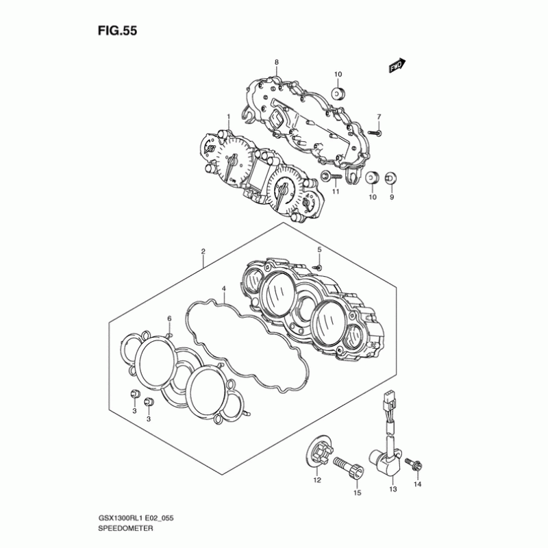 Детализация узла Спидометр (Gsx1300rufl1 e19) для Suzuki GSX1300 Hayabusa.