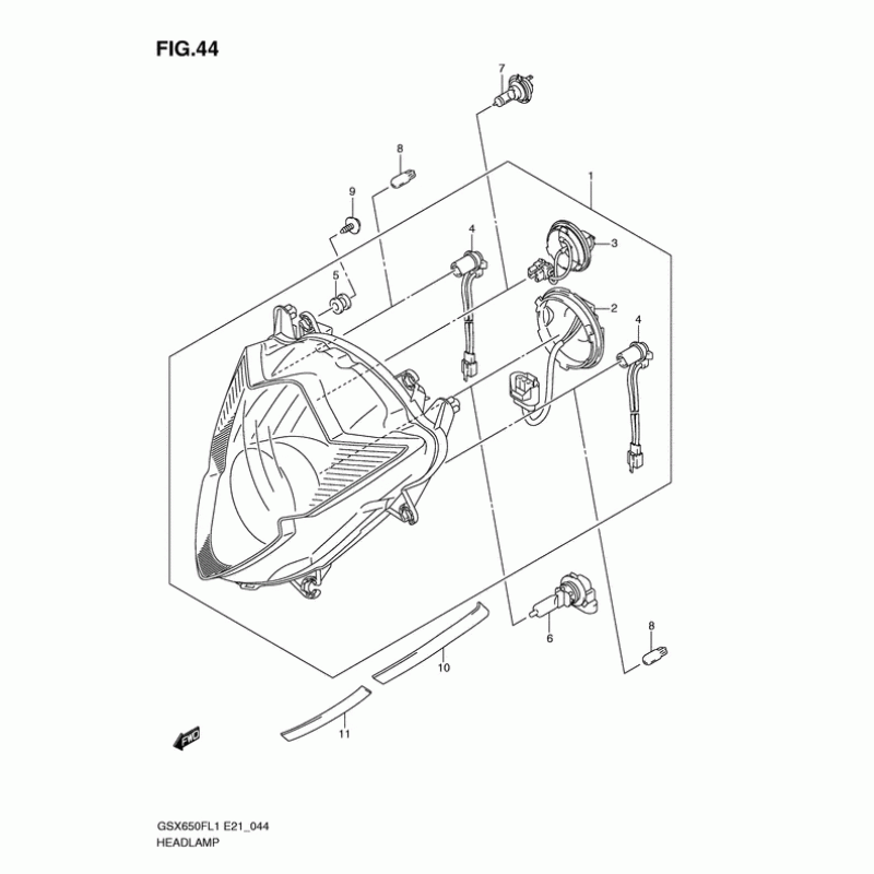 Детализация узла Фара (Gsx650fl1 e21) для Suzuki GSX650.