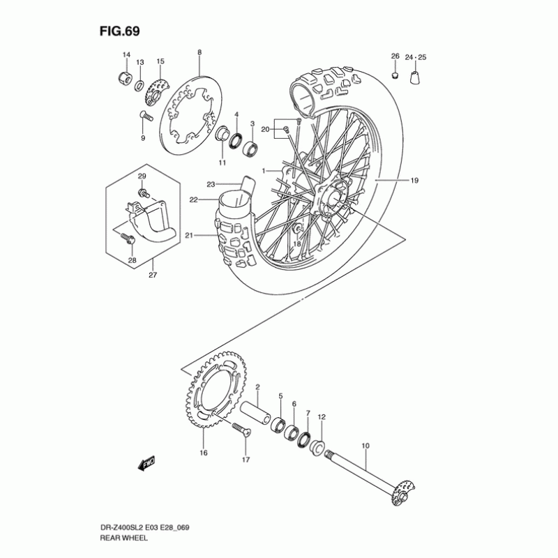 Схема узла: Заднее колесо для Suzuki DR-Z400 DR-Z400S