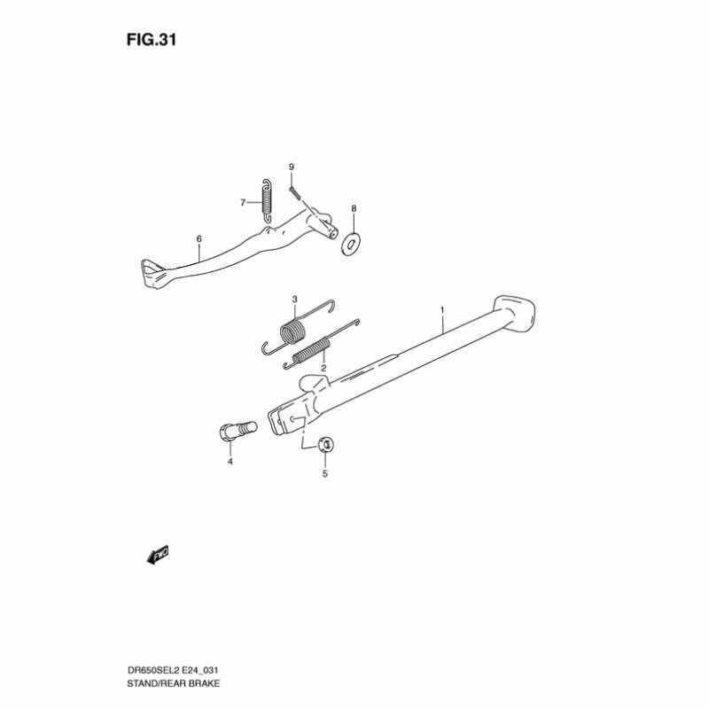 Детализация узла Подножка & Задний тормоз для Suzuki DR650 DR650SE.