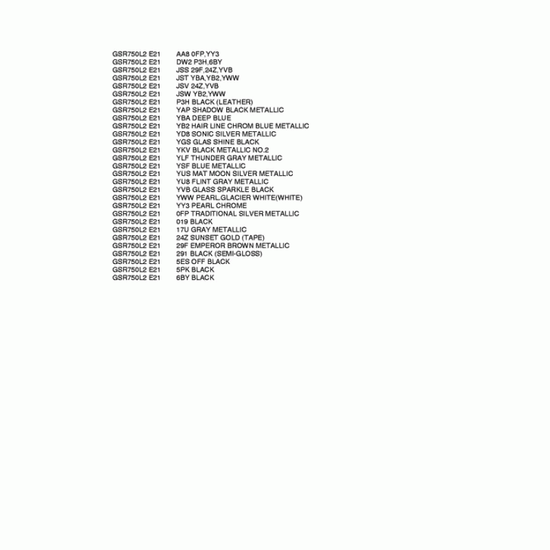Детализация узла Расшифровка цвета для Suzuki GSR750.